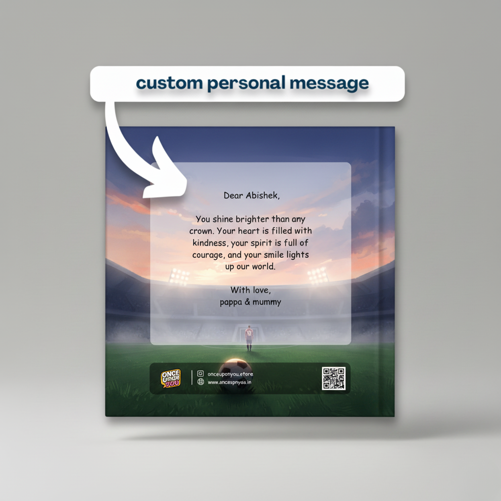 Step into a world of dreams, goals, and inspiration with this personalized football storybook — where your little one becomes the hero of their own big match alongside their idol, Messi.